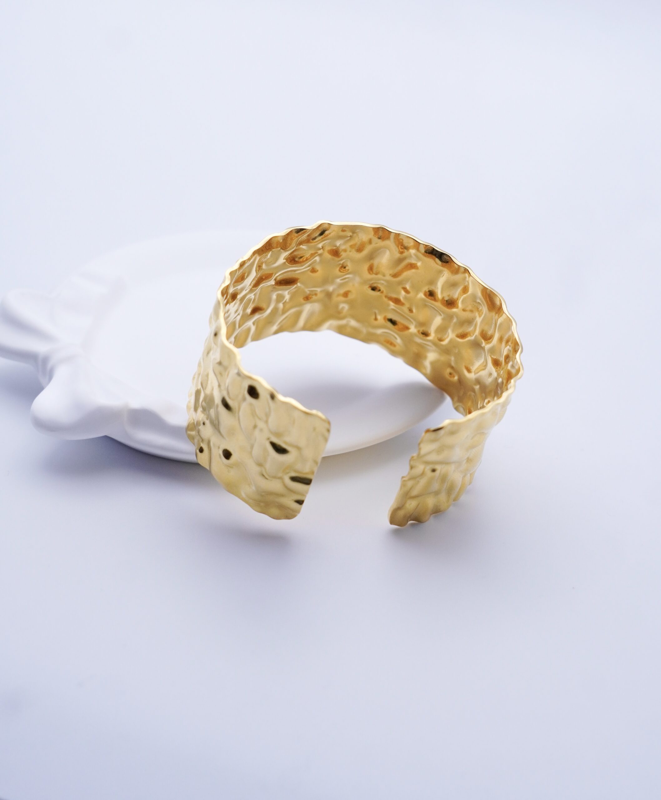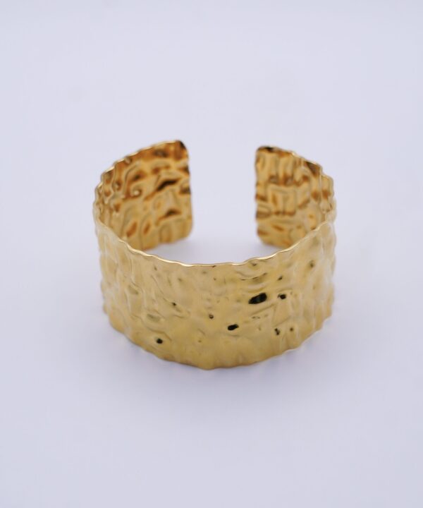 Idéale pour les amateurs de pièces intemporelles. L’aspect texturé de ce bracelet offre un look intemporel et résolument chic pour la vie. Son ajustement ouvert permet une grande flexibilité. Résiste à l’eau et à la vie.